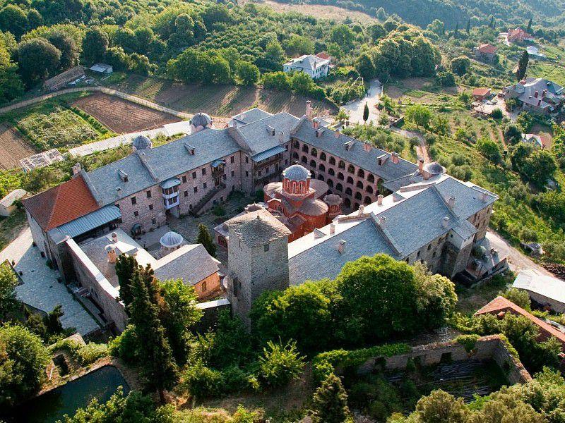 Η Μονή βρίσκεται σε απόσταση 500μ από τις Καρυες. Ιδρύθηκε τον 13ο αι. από τον Κωνσταντίνο, εκχριστιανισμένο γιο του Αζζεδίν Β’. της οικογένειας Κουτλουμούς. Αργότερα καταστράφηκε και ξανά αναπτύχθηκε στα χρόνια του ηγουμένου Χαρίτωνος από την Ίμβρο.
