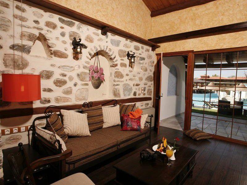 Τα όμορφα δωμάτια και οι σουίτες του Athena Pallas χαρακτηρίζονται από ξύλινα δοκάρια και πέτρινη διακόσμηση. Όλα είναι εξοπλισμένα με δορυφορική τηλεόραση, κλιματισμό και μίνι μπαρ.