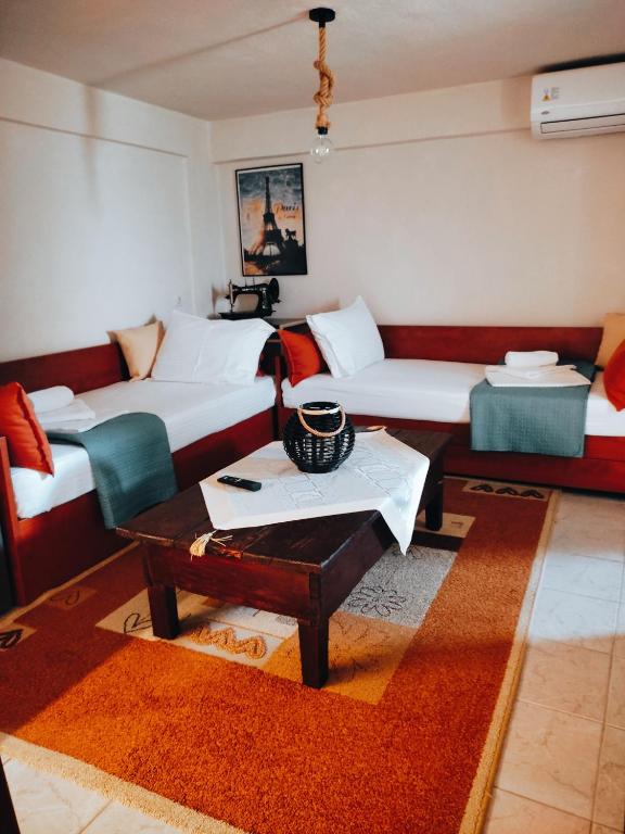 Διαθέτει ένα υπνοδωμάτιο με ένα διπλό κρεβάτι,η κουζίνα είναι πλήρως εξοπλισμένη, έχει φούρνο,κεραμικές εστίες και ψυγείο, στο σαλόνι έχει δύο καναπέδες που γίνονται κρεβάτια (δύο μονά)το μπάνιο είναι ανακαινισμένο και διαθέτει πλυντήριο ρούχων και σεσουάρ μαλλιών!