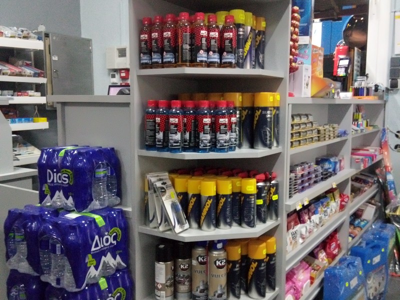 Στις εγκαταστάσεις του μπορείτε να βρείτε λιπαντικά αυτοκινήτων και αξεσουάρ, πλυντήριο αυτοκινήτων και βουλκανιζατέρ για επισκευές ελαστικών.